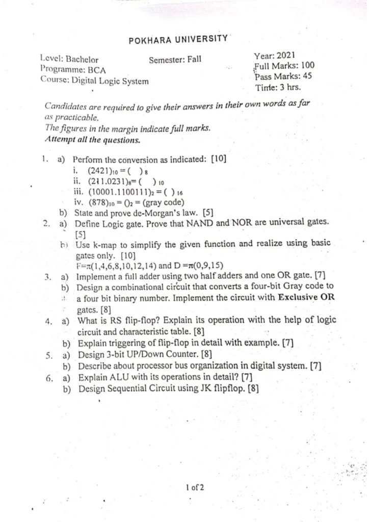 PU BCA 1st Sem Digital Logic System Question Paper 24 November 202527 March 2024 by Mero Enotes PU BCA 1 Semester Digital Logic System Question Paper 2024 PU BCA 1 Semester Digital Logic System Question Paper 2023 PU BCA 1 Semester Digital Logic System Question Paper 2021 Post Views: 1,236