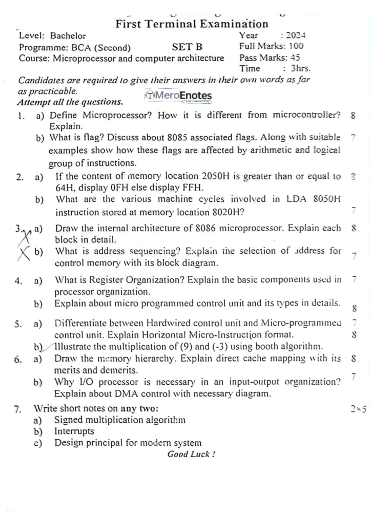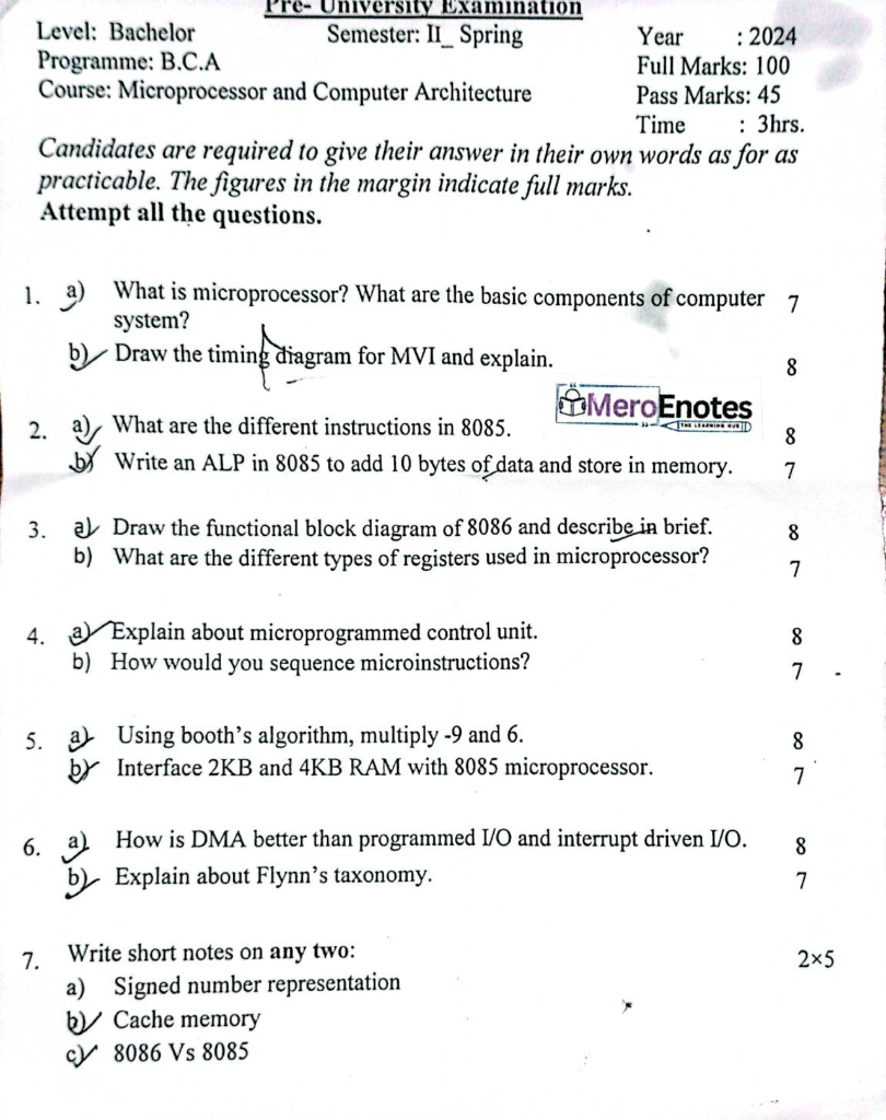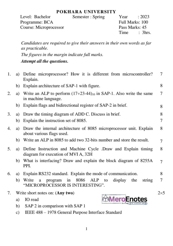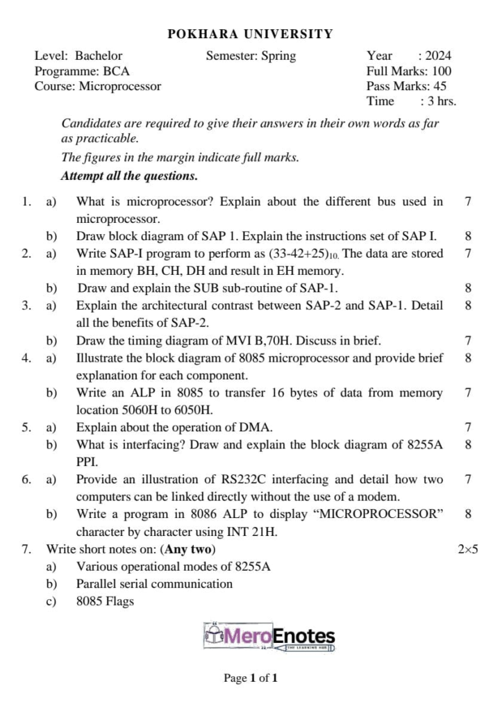 Here are the Pokhara University PU BCA Microprocessor and Computer Architecture Question Paper 2nd Semester. This authentic resource will help you practice efficiently. Build Confidence, and Perform better in your Exam. Here is the last 5 Year Question Paper Collection. If you need a PDF of this Question paper Contact us on Social Media We will Provide you with the paper. If you have any subject Question papers share them with others through Mero Enotes