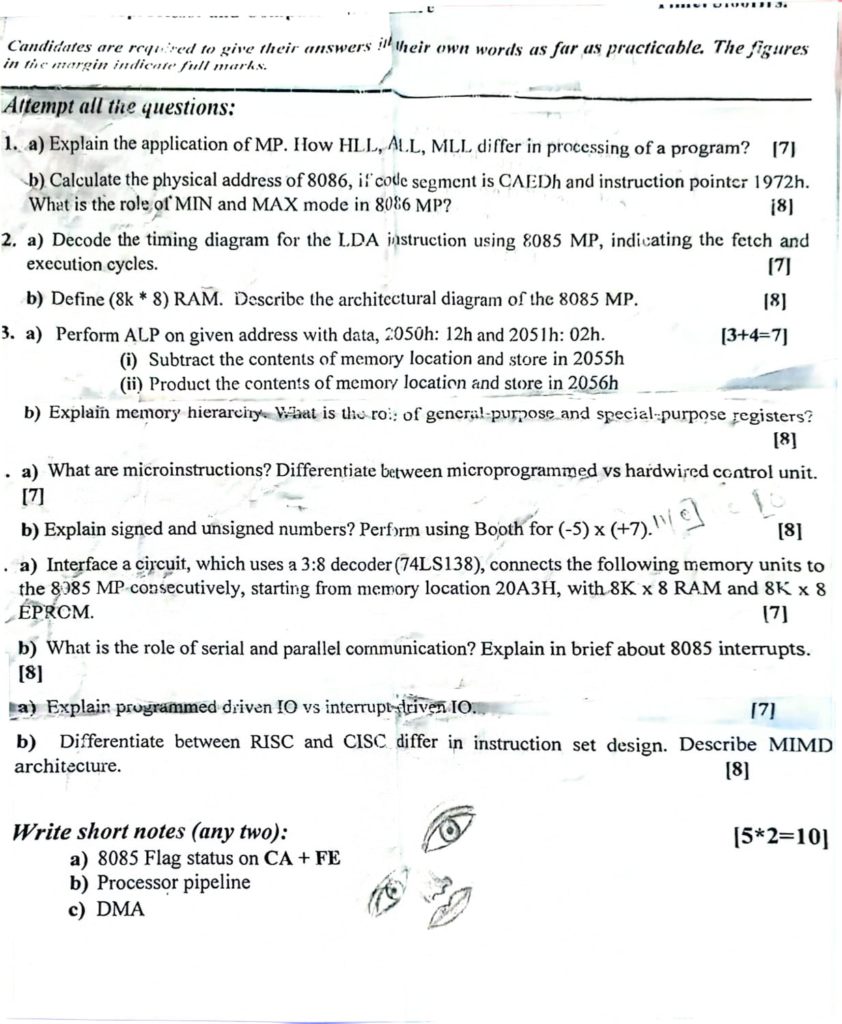 BCA Microprocessor and Computer Architecture Question Paper 2023