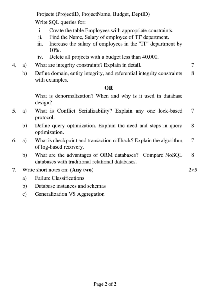 BCA Database Management System Question Paper 2024