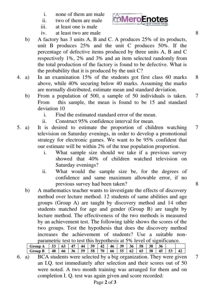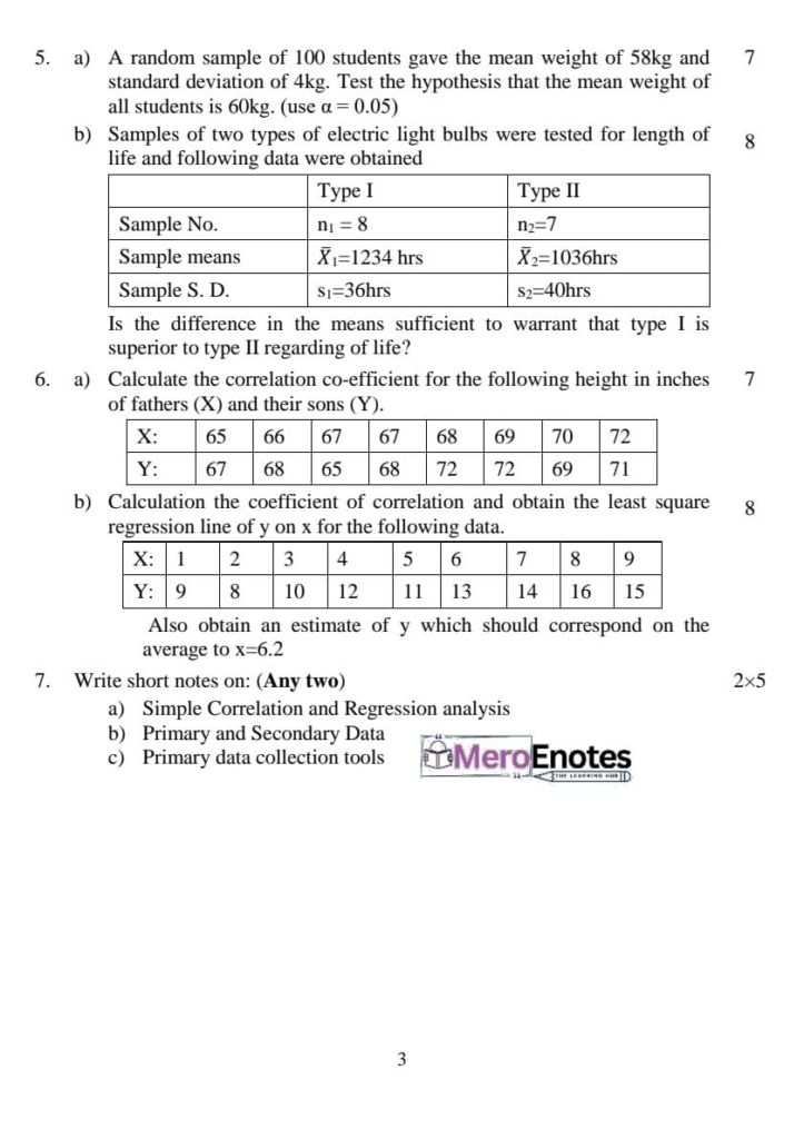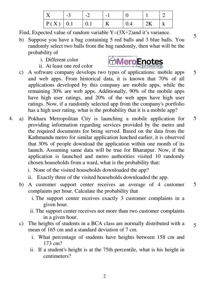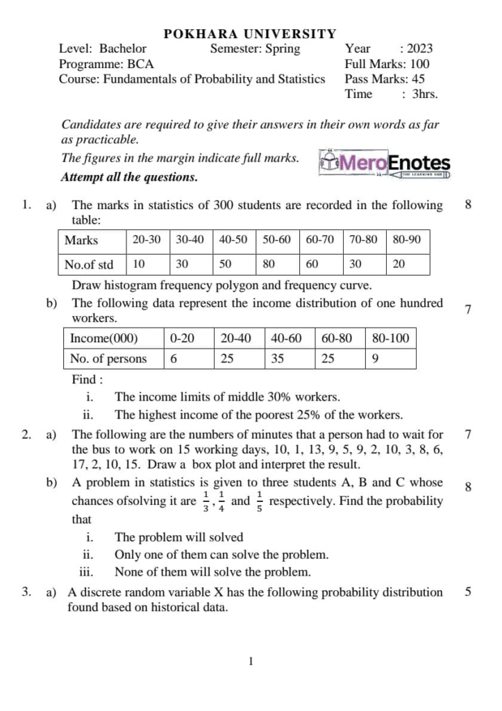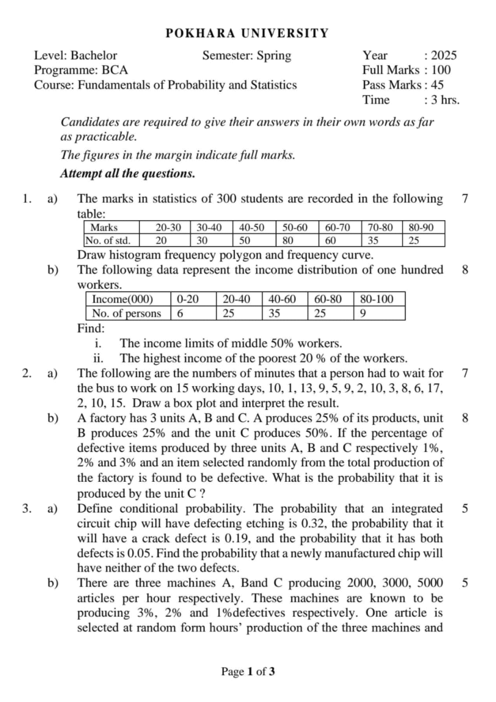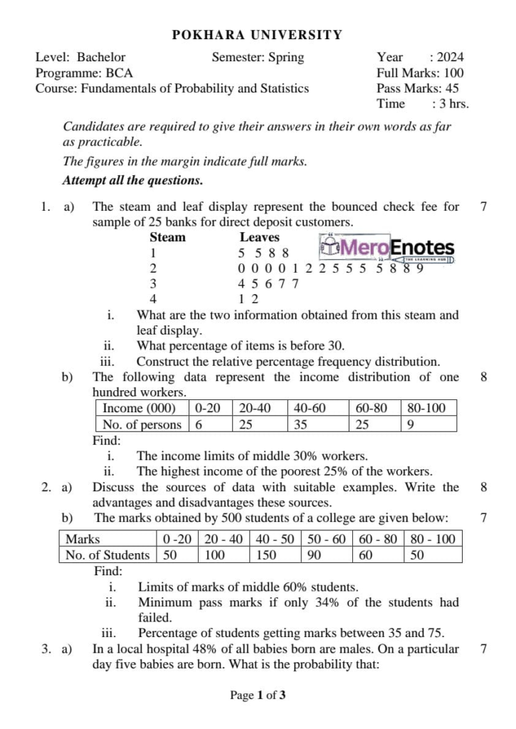 Here are the Pokhara University Pou BCA Probability & Statistics Question Paper 6th Semester. This authentic resource will help you practice efficiently. Build Confidence, and Perform better in your Exam. Here is the last 5 Year Question Paper Collection. If you need a PDF of this Question paper Contact us on Social Media We will Provide you with the paper. If you have any subject Question papers share them with others through Mero Enotes.