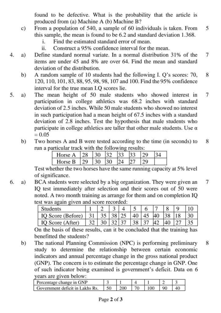 BCA Probability & Statistics Question Paper 2023