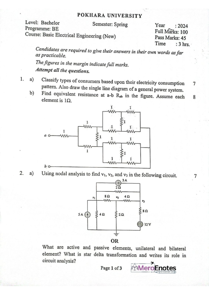 Here are the Pokhara University PU BE Computer Basic Electrical Engineering Question Paper 1st Semester. This authentic resource will help you practice efficiently. Build Confidence, and Perform better in your Exam. Here is the last 5 Year Question Paper Collection. If you need a PDF of this Question paper Contact us on Social Media We will Provide you with the paper. If you have any subject Question papers share them with others through Mero Enotes.